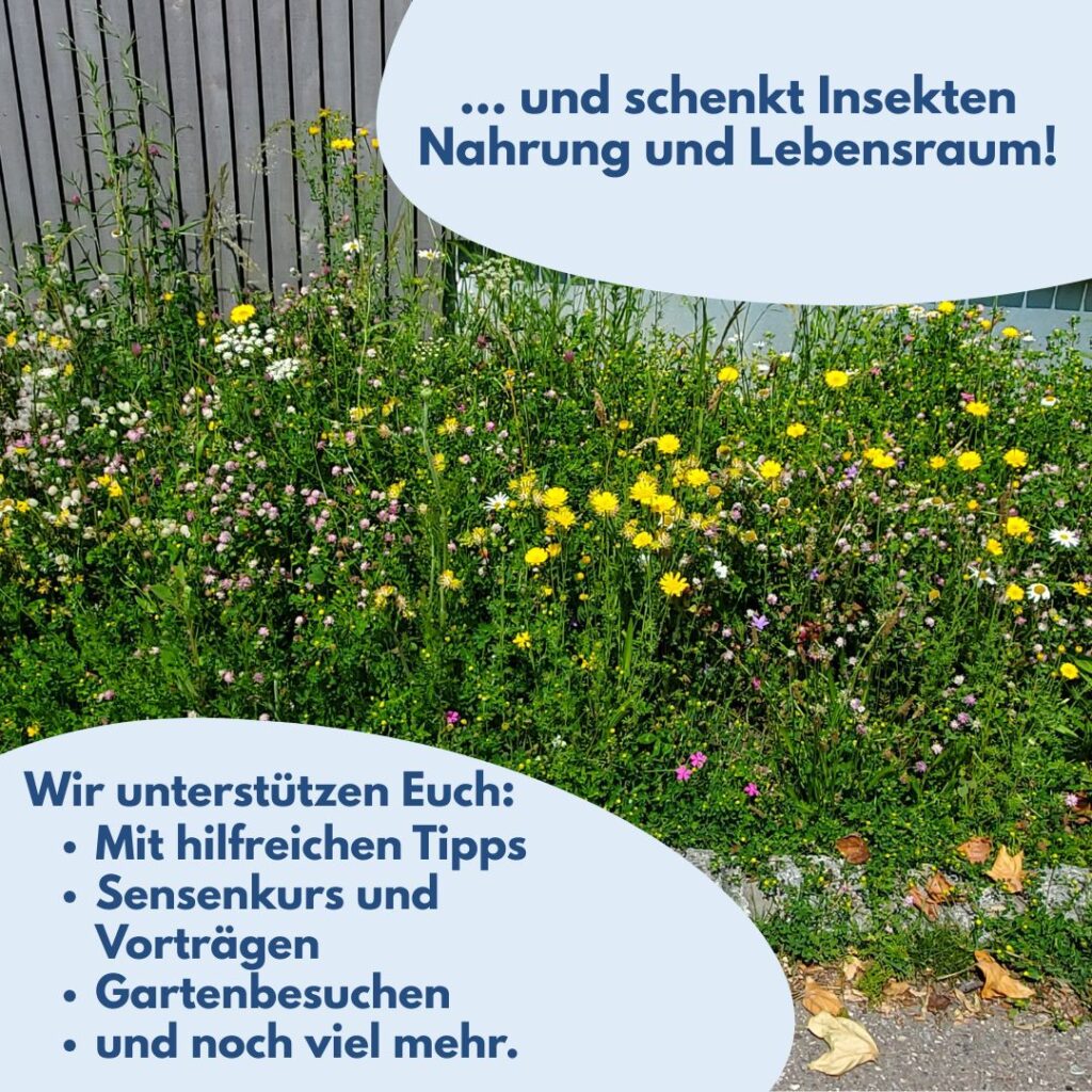 Bürger*innen von Radolfzell lassen sich vom Projekt inspirieren und mähen ihre Grünfläche (teilweise) später oder gar nicht. Sie nutzen das Informationsangebot und tauschen sich auf Einladung der Bodensee-Stiftung miteinander aus.